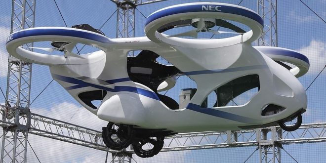 عرضت شركة الإلكترونيات اليابانية NEC سيارة طائرة، والتي تشبه الطائرات بدون طيار مع أربعة مراوح، وكانت قادرة على التحليق بثبات لمدة دقيقة. واستطاعت الرحلة التجريبية الوصول إلى ارتفاع 3 أمتار من الأرض دون وجود أي راكب داخلها، وتضمنت الاستعدادات فحوصات عديدة على السيارة الطائرة التي تعمل بالبطارية. وتمت عملية الاختبار …